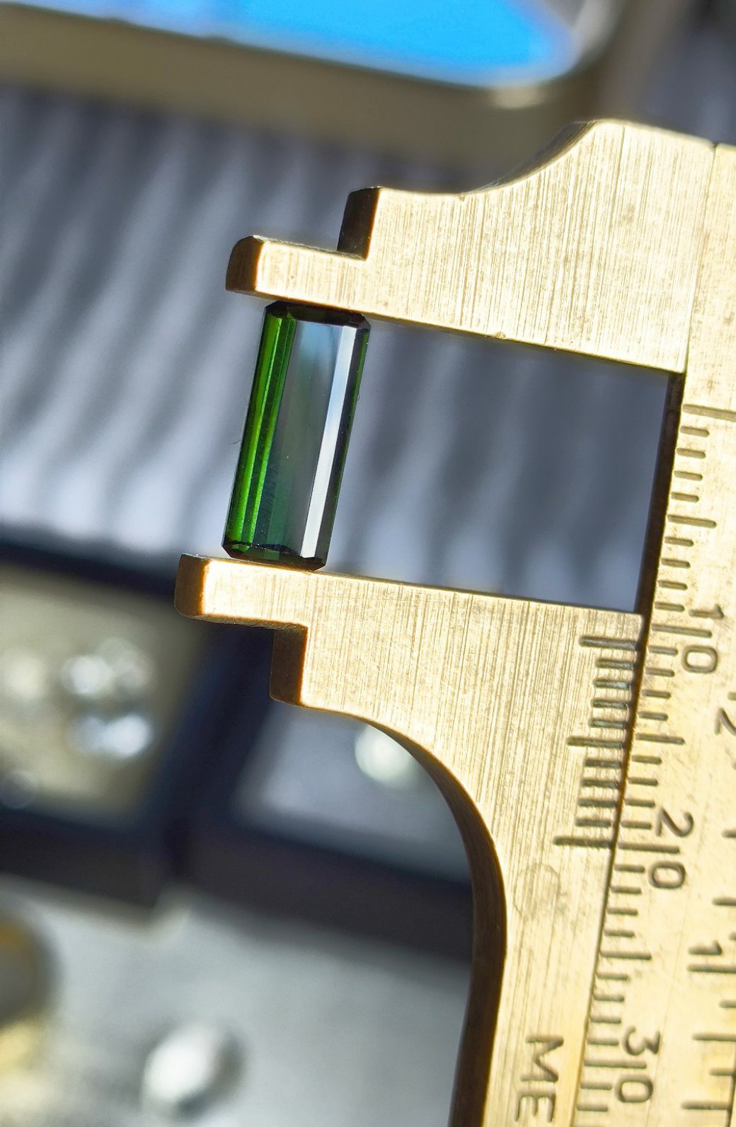 Turmalina verde Tamanho : 11 x 4 mm Peso : 1.5 CTs